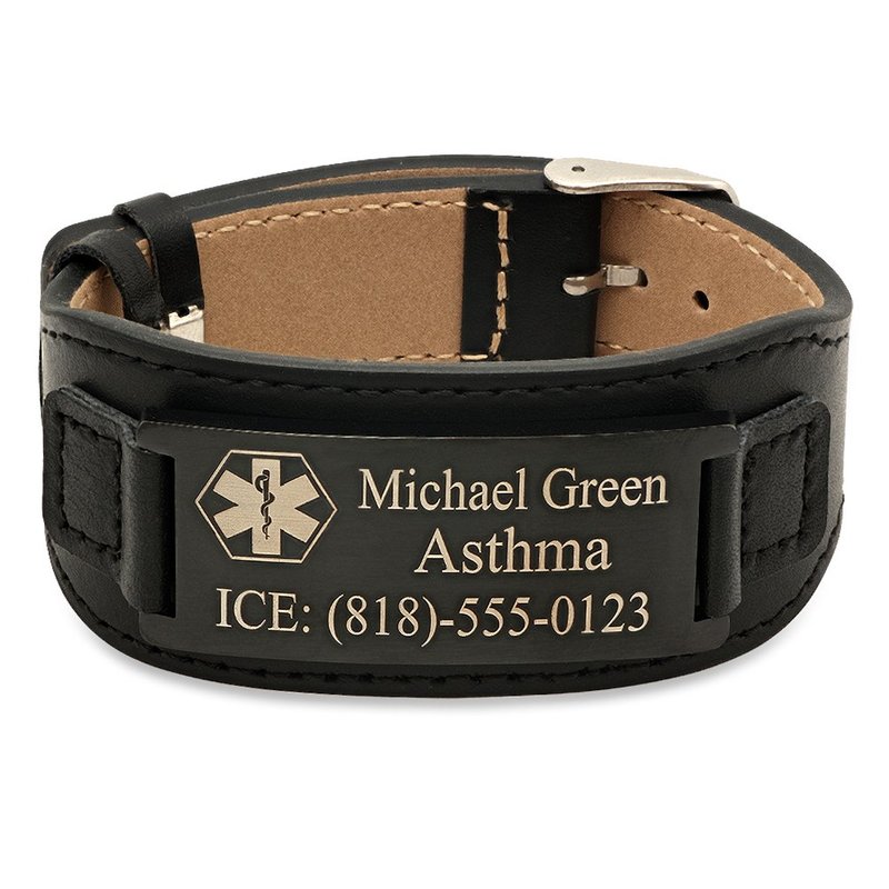 Quality Stainless Steel Medical ID Bracelet with Leather - Free Engraving Personalize it Free! We can engrave free on one side of the bracelet with 3 lines up to 20 characters per line Product Info: Model: Material: Stainless Steel Size Width : 1.1 inches Size Length : 9.2 inches Adjustable 100% Satisfaction Guaranteed. Comes With Free Medical Alert Identification Card