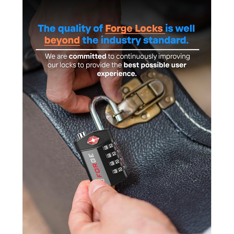 - Forge TSA combination lock is intentionally designed for simplicity. Setting it up is a breeze, and using it is even easier, all thanks to our user-friendly design. Select your 4-digit combination code from 10,000 possible choices, and you will appreciate the hassle-free security it offers, all without the need for keys. These travel locks are an ideal choice for travelers and anyone who values quick access to their luggage, toolboxes and more.