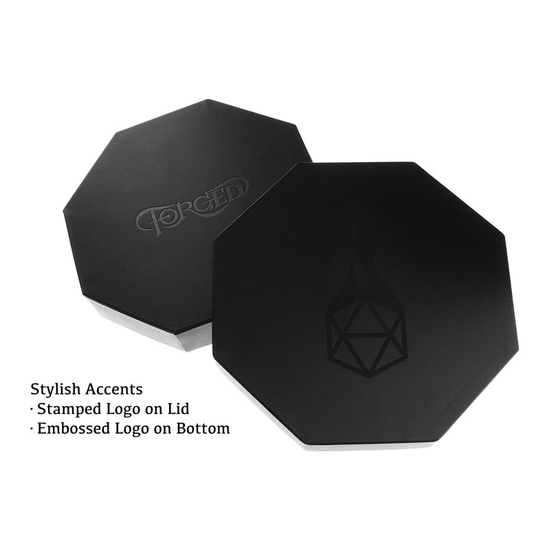 Honor your dice with a sanctum that celebrates their fate-determining power and showcases their polyhedral prowess. With the Forged Dice Co Dice Arena, you do more than cast your dice, you engage your game. Features include: