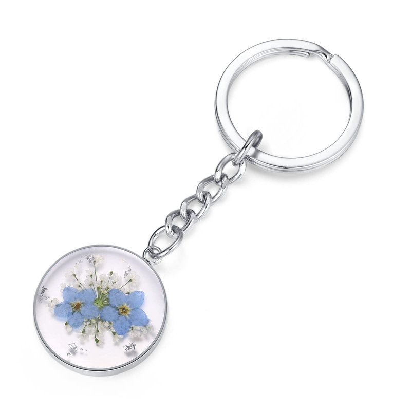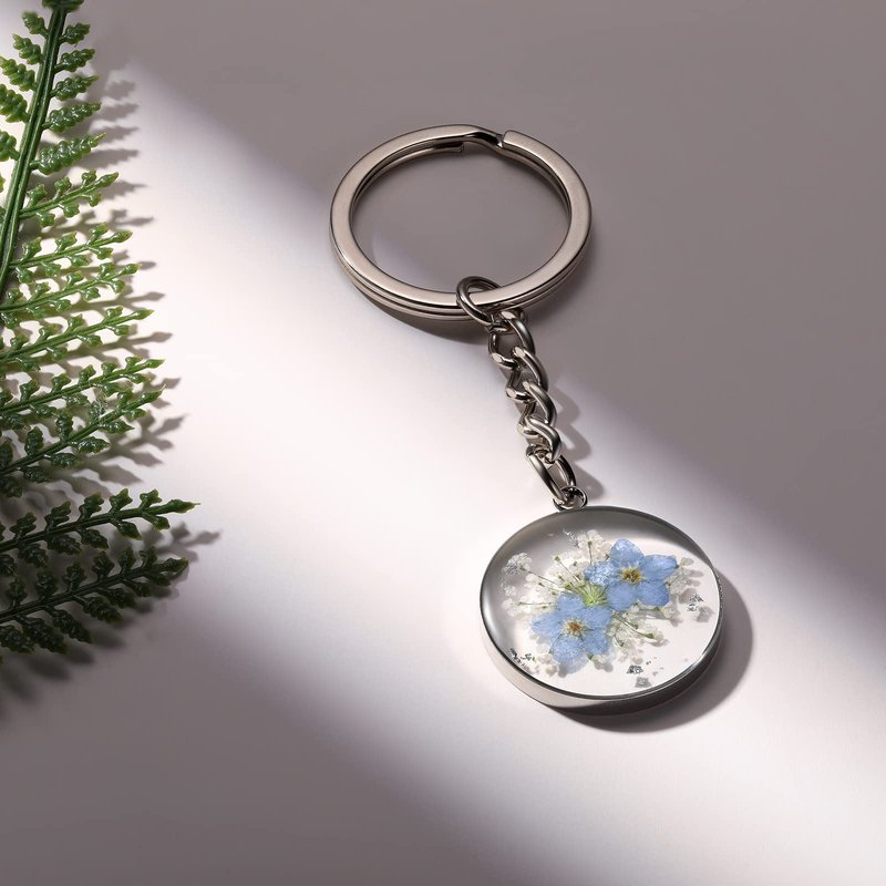 - Color: Forget-Me-Not and Queen Anne's Lace Wildflower Keychain