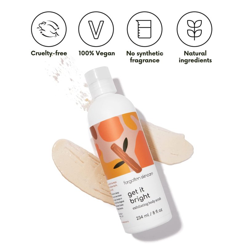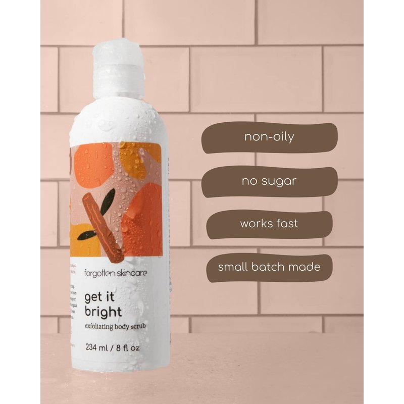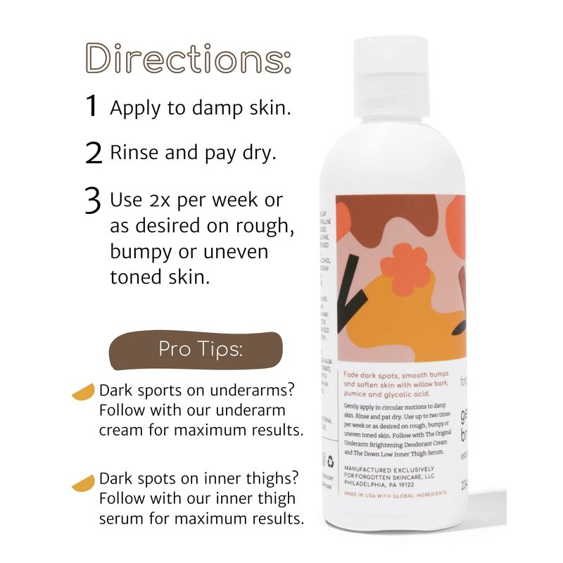 Forgotten Skincare Get It Bright Exfoliating Body Scrub for Dark Armpits, Bikini Area, and KP Bumps with Glycolic Acid, Pumice and Kaolin Clay