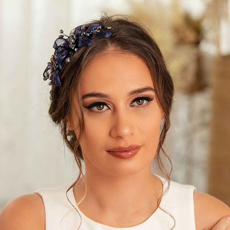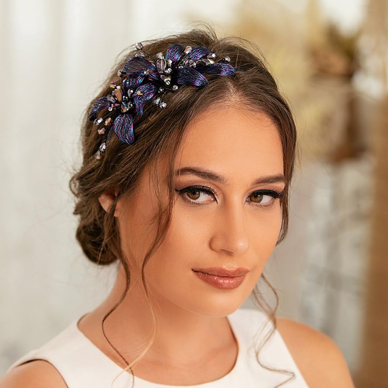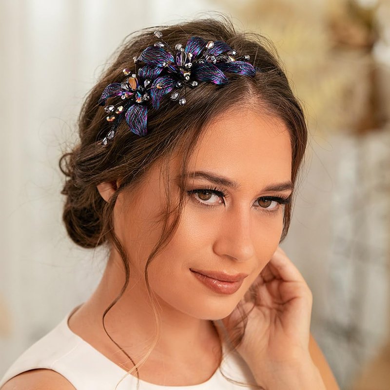 - Copper wire floral hair accessory is fashionable and sturdy, tastefully adorned with sparkly crystal beads vines and stunning flowers made by blue and purple copper wire and crystal beads in stone chip shape, and can be able to match any outfit you want to put on, fitting for any occasions you like, such as prom, party, wedding, anniversary, festival, photo-shoot or daily wear.