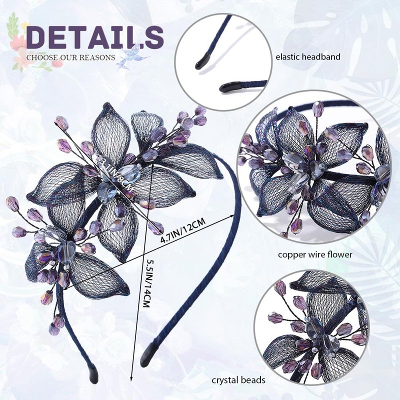 - Blue flowers crystal headband is made of elastic headband, copper wire flower and crystal beads.