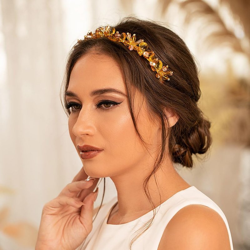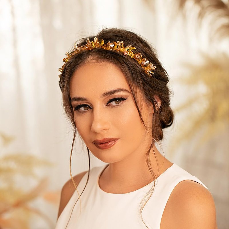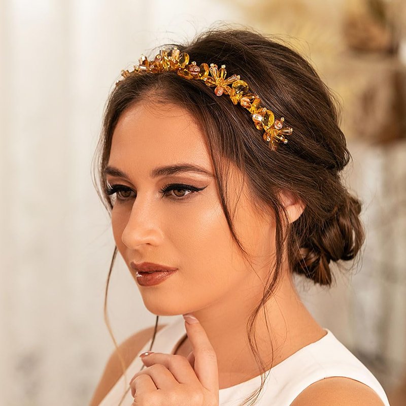 - Gold crystal beads hair accessory is comfortable and sturdy. This headband is elastic, so it fits for most head size, without being too tight behind the ears when wearing. What's more, they are made of high quality alloy which helps them last longer and with fine craftsmanship, so you don't have to worry about fading or breaking problems.