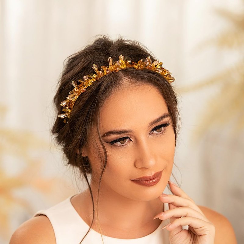 - Yellow crystals headband is made of alloy, crystal beads and seed beads.