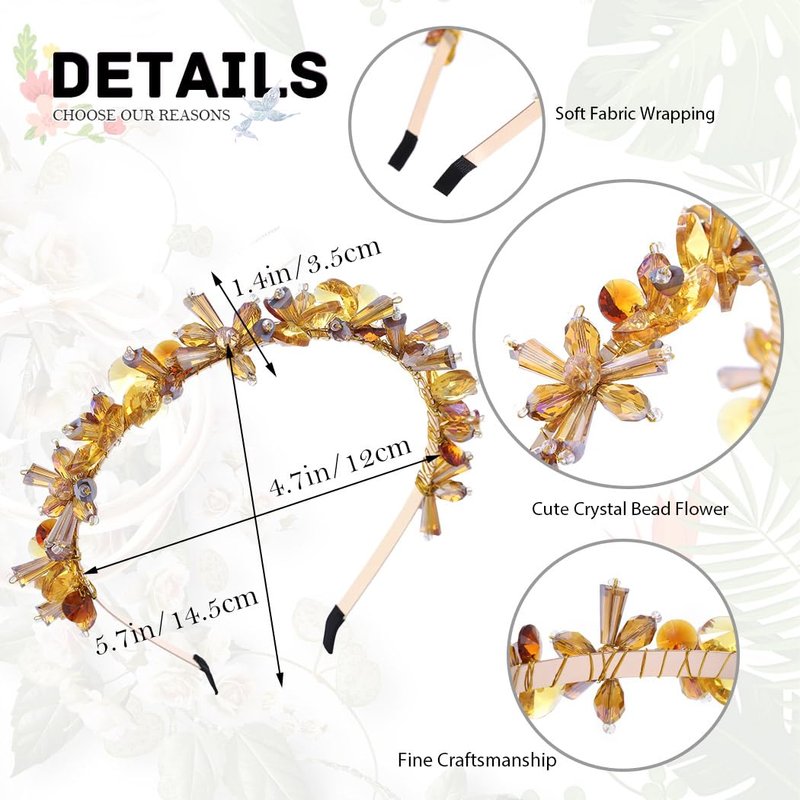 - Handmade floral beads headpiece is fashionable, tastefully adorned with cute seed beads and stunning yellow crystal beads in a mixture of shapes and sizes, and can be able to match any outfit you want to put on, fitting for any occasions you like, such as prom, party, wedding, anniversary, festival, photo-shoot or daily wear.