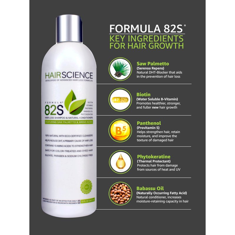 - CLINICALLY PROVEN: Formula 82S combats hair loss through the DHT-blocker, Saw Palmetto, and promotes fuller, healthier hair growth with Biotin and Panthenol. Ideal for those experiencing age-related thinning, treatment-related damage, and androgenetic alopecia.