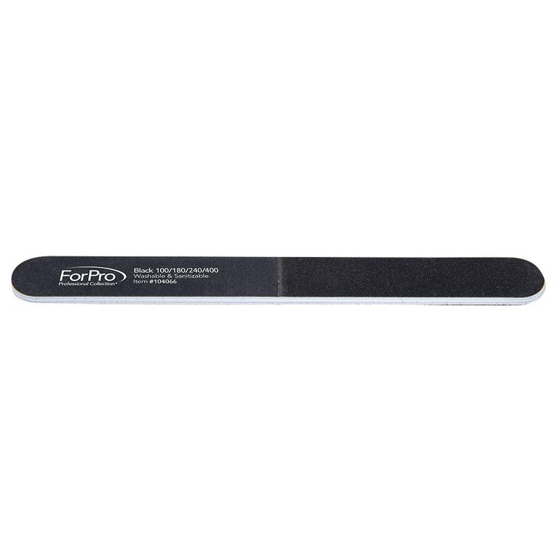 ForPro Black 4-Way Nail File, 100/180/240/400 Grit, Four-Sided Manicure and Pedicure Nail File and Buffer, 7” L x .75” W, 50-Count