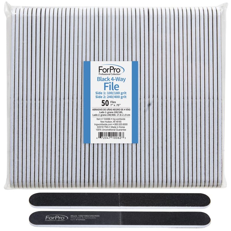 - Nail File: ForPro 4- Way Nail Files are made from high-quality foam and sandpaper. These high-quality nail files are a necessary addition to your manicure accessories.