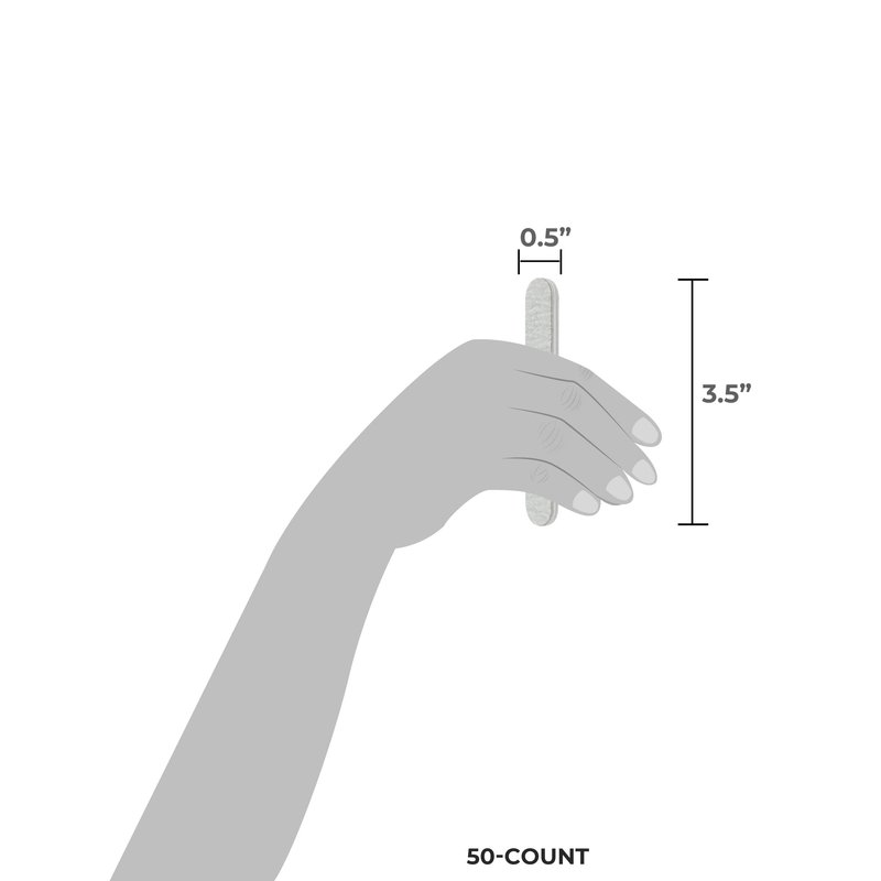 - Mini Nail File: The Mini foam boards measure 3.5” L x 0.5” W. Each package contains 50 washable nail files.