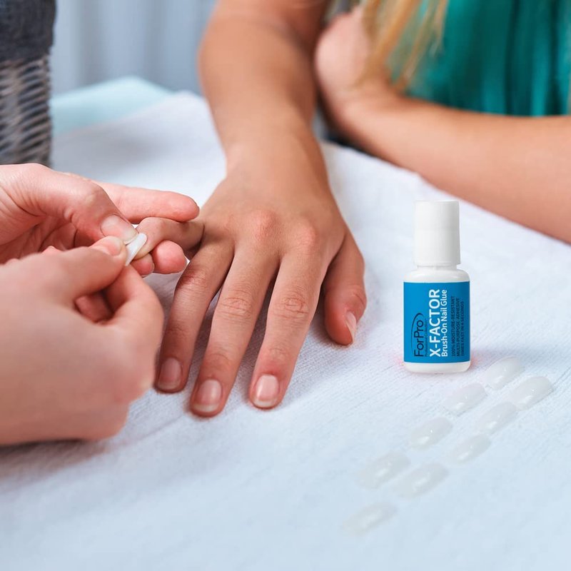- Quick-Drying Nail Glue: ForPro Brush-On Nail Glue quickly adheres nail tips in 4-6 seconds.