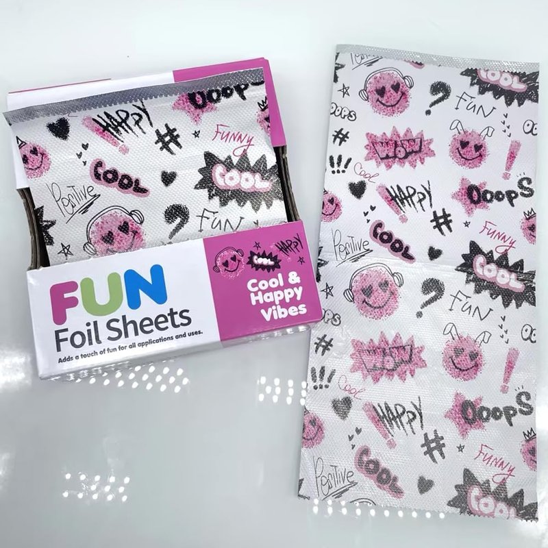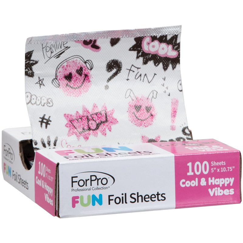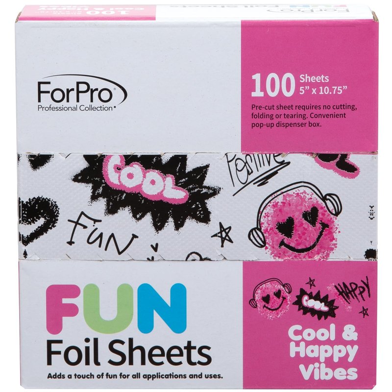 ForPro Professional Collection FUN Cool & Happy Vibes Foil Sheets, Aluminum, Pop-Up Foil Dispenser, Hair Foils for Color Application & Highlighting Services, Food Safe, 5” W x 10.75” L, 100-Count