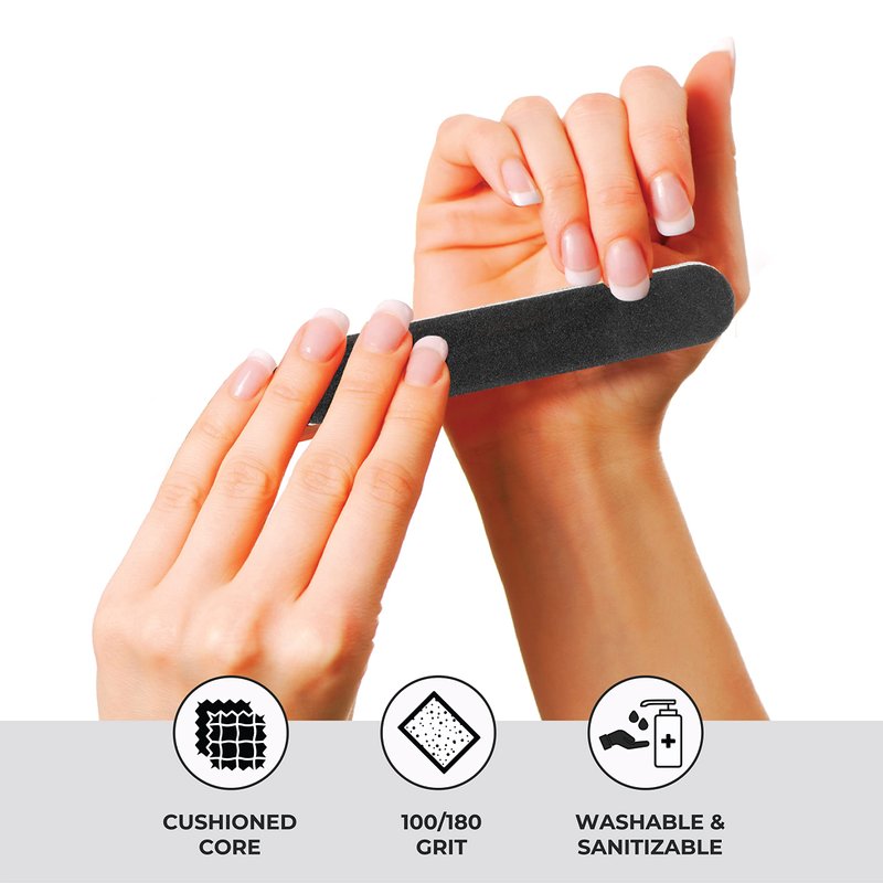 - Cushioned Core Nail File: Offers a cushioned core that allows for fast, easy, and precise filing of nails.