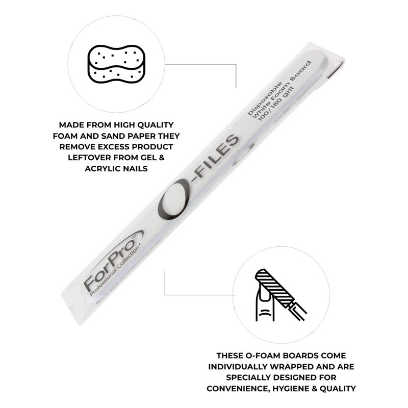 - White Nail File: ForPro O-Files Foam Boards are made from high quality foam and sand paper. These double-sided nail files are a necessary addition to your manicure accessories.