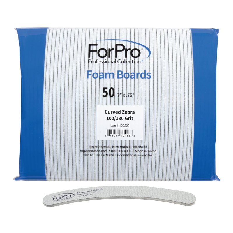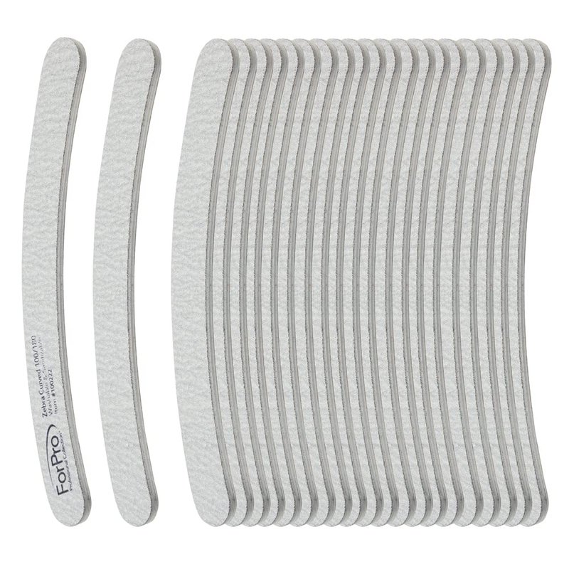 ForPro Professional Collection Zebra Curved Foam Board, 100/180 Grit, Double-Sided Manicure and Pedicure Nail Files, 7” L x .75” W, 50-Count