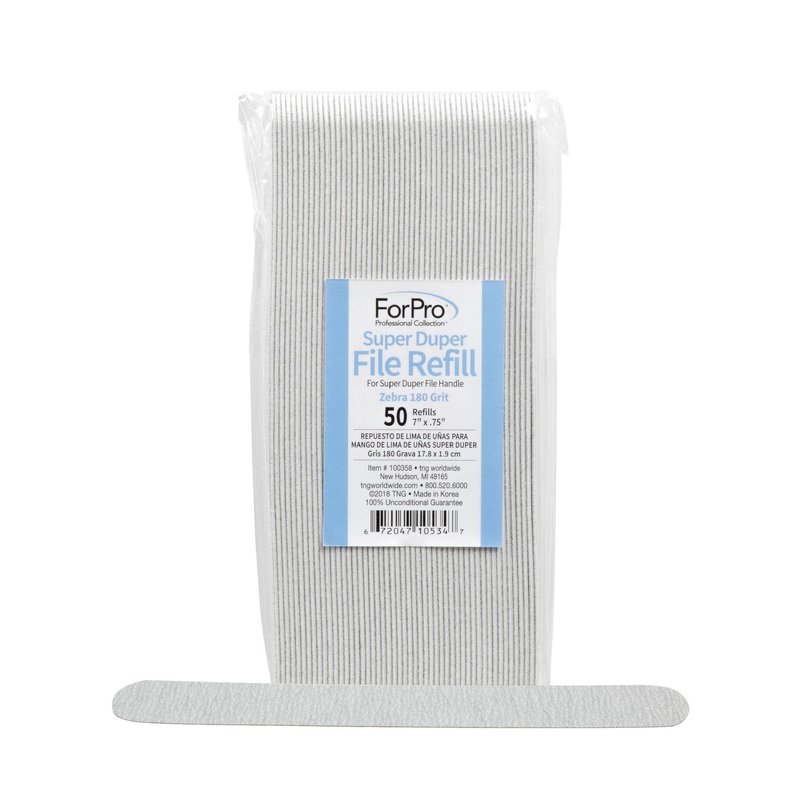 ForPro Super Duper File System Refills, Zebra, 180 Grit, Manicure Nail File Refills, 7” L x .75“ W, 50-Count