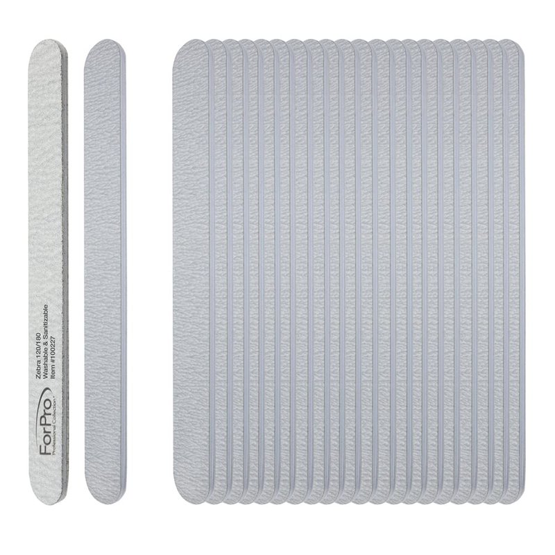 ForPro Zebra Foam Board, 120/180 Grit, Double-Sided Manicure Nail File, 7” L x .75” W 50-Count