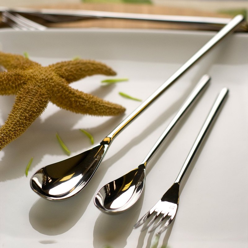 - Dragonfly pattern: modern, contemporary; formal or casual settings; long to extra long narrow rounded handles; scooped shaped spoons; lighter weight