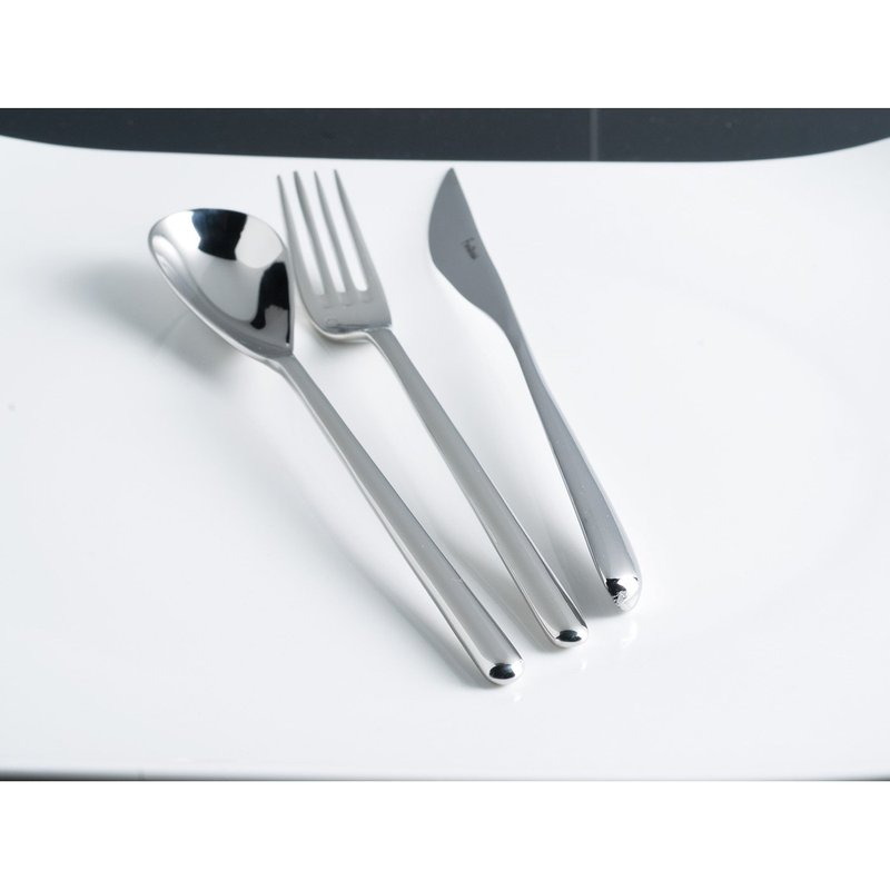 - 5 piece set includes: table fork, salad/dessert fork, table knife, dessert/soup spoon, coffee/ tea spoon; features a light weight and balance in hand