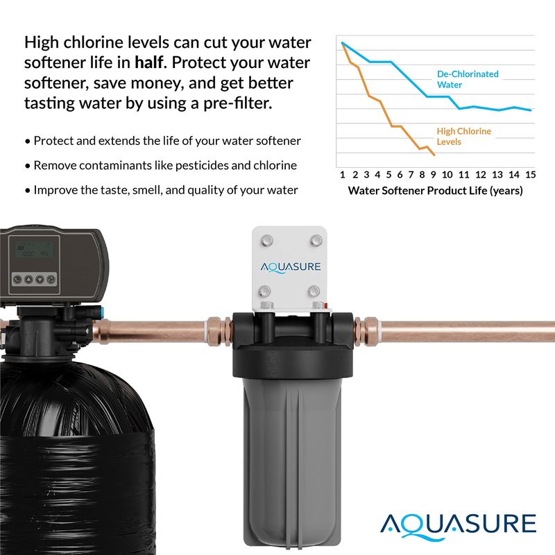 - ✅ Improved lifespan: The compact water filter system provides 50,000 gallons of high-quality filtered water or 6 months of filtration by its carbon filter. The exact output depends on the local water quality. The improved filter life ensures that you will get effective chlorine reduction until the last drop. Now you can save money and effort by replacing the filter less frequently.