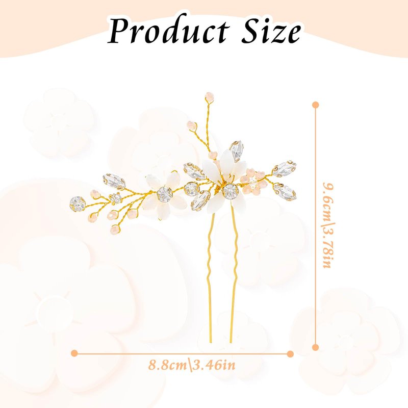 - 💐Dimensions: The slightly larger hair pins measure a grand total of 3.94 inches in length and 3.74 inches in width. The functional part of the hair pin, excluding the rhinestone embellishments, extends to 2.56 inches, providing a secure and comfortable fit for various hairstyles. These Elegant Handmade Flower Hair pins are designed to gracefully adorn your tresses, enhancing your bridal look with their precise dimensions.