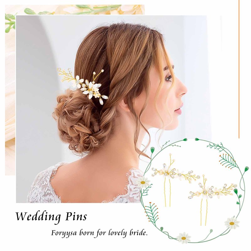 Foryysa Bridal Wedding Hair Pins for Women Gold Rhinestone Flower Headpiece Elegant Handmade Vine Headwear Sparkly Design (2 pcs)