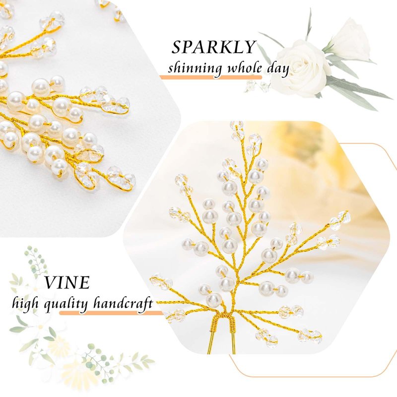 - Design: Crafted with meticulous attention to detail, our Bridal Wedding Hair Pins for Women feature a stunning combination of gold rhinestones and pearls that intertwine like a vibrant vine, exuding a sparkling radiance and a harmonious blend with nature. Each piece is Elegant Handmade Flower Hair pins, ensuring a unique and exquisite touch to your special day.