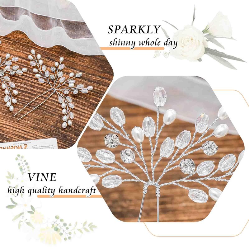 - Design: Handcrafted with elegance, our Bridal Wedding Hair Pins for Women feature a stunning combination of pearls and rhinestones that resemble a vibrant silver vine. These Silver Vine Hair pins are not only sparkly but also carry an aura of nature, making them perfect for a bride seeking a touch of natural grace.