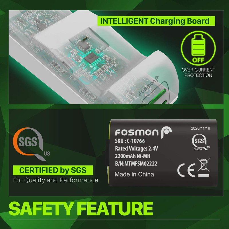 - [2200MAH BATTERY LIFE – CERTIFIED BY SGS] How many disposable batteries have you thrown away? Have you thought of how much money it would save to say goodbye to using AA batteries in your controllers? With the NiMH batteries’ 2200mAh capacity, you will be able to enjoy up to 40-45 hours of play time on each charge. Fosmon’s batteries are SGS CERTIFIED to ensure our products consistently meet safety standards and provide the best customer experience.