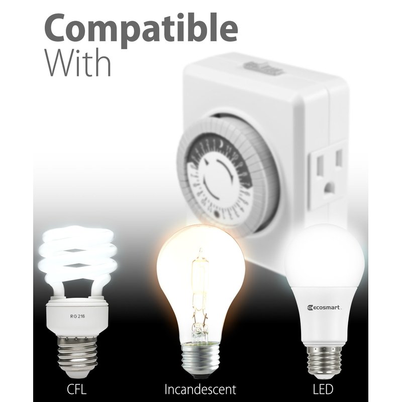 - [CONVENIENT AND COMPATIBLE] Each package includes 2 timer plugs powering 4 electrical devices. The wall timer plug is compatible with fish tank heat power center, plant light, reptile habitat lighting, and most of the small appliances. Compact fluorescent lighting, LED bulbs compatible.