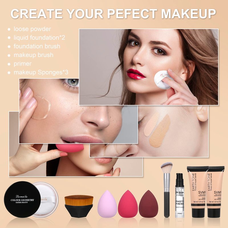 Foundation Liquid Full Coverage Matte Oil Control Concealer with Face Primer & Makeup Brush & Makeup Sponges