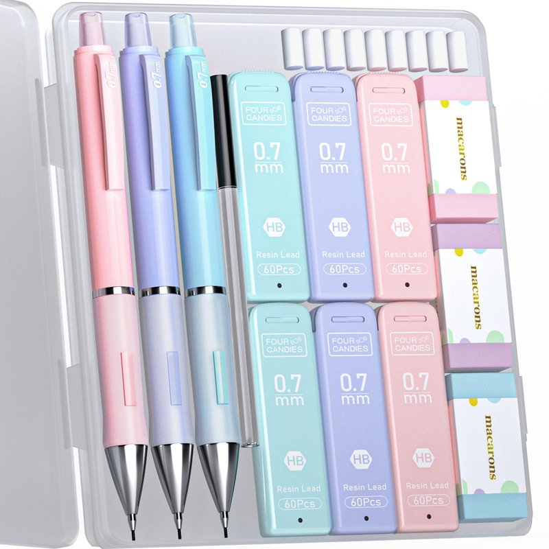 - 【Exquisite Set】You will get an exquisite mechanical pencil set! Contains 3pcs 0.7mm pastel mechanical pencils, 6 tubes of lead refills(360Pcs), 3pcs erasers and 9pcs eraser refills.