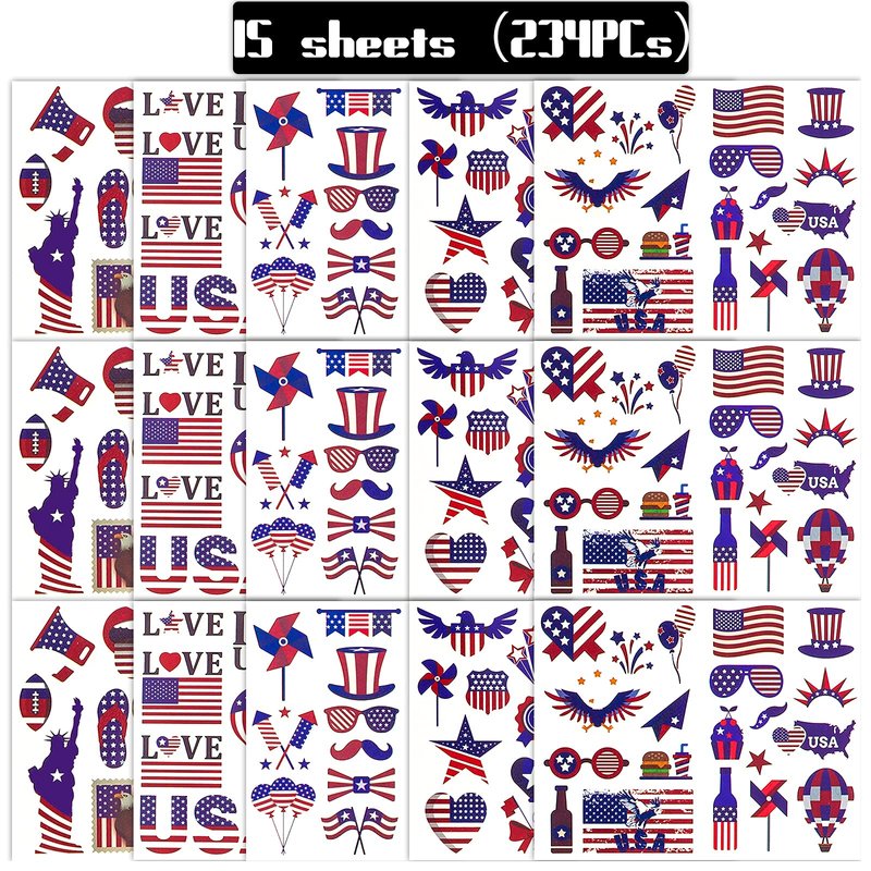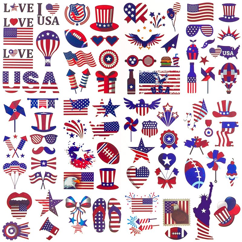 - Worthy Fourth of July Tattoos -- USA tattoos design with 78 different style 183pcs total contains 15 sheet in the package. A series of football style to provide big fun for both children and adults alike!