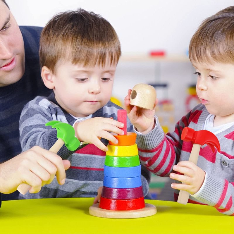 Wooden Hammer Toys for Kids Toddlers Why choose our wooden hammer toys? 1. Made of premium wood material, safe and durable, which not easy to damage, can be used for a long time, smooth surface. 2. Compact size and lightweight, suitable for kids to play and convenient to carry. Very suitable for children 3 years old+. 3. It can also be used as a parent- child interactive toy. You can use it to play with your children. Specification Package Include: 3 × Wooden hammer toy Material: High quality wood Size: 6.5 × 2.36 × 1 inch Color: Green and Red Weight: 20oz Educational Toys Perfectly designed for small hands to grasp and touch, these toy hammers will improve your baby grabbing ability, hand eye coordination ability, manipulation, promotes dexterity, arm movement. Perfect Kids Toddler Gift This unique learning toy will be an excellent toy for toddler boys and girls. Perfect gift for kids birthday, Christmas.