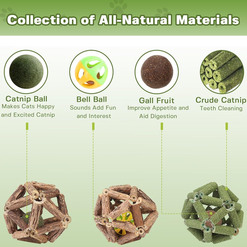 - 【Natural Materials and Health Benefits】 Made from 100% natural catnip and silvervine, our catnip balls are rich in plant fibers that aid digestion, help eliminate hairballs, and improve appetite. Note: Not suitable for pregnant cats; avoid frequent use, recommended once a week. These cat chew toys are a natural way to support your cat's health.