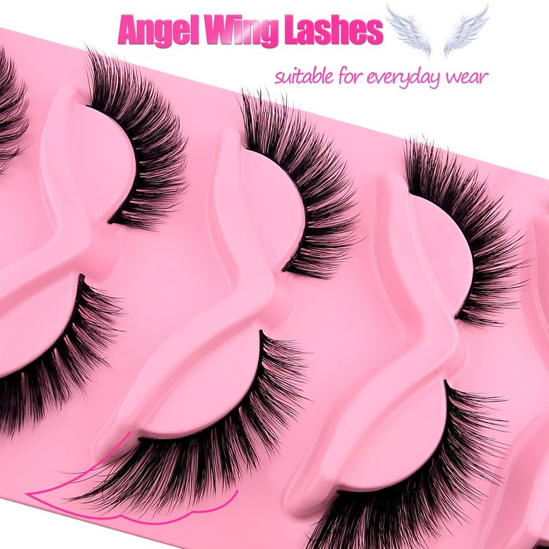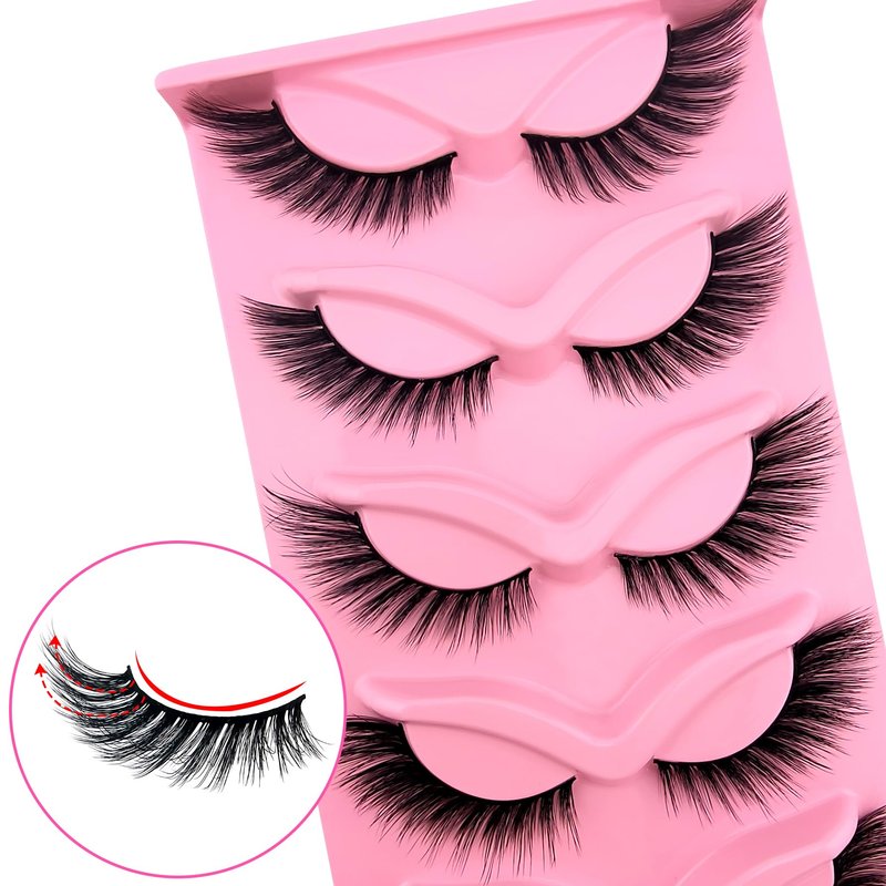 Fox Eye Lashes Wispy Eyelashes 18mm Cat-Eye Lashes Angel Wing Lashes Faux Mink False Eyelashes Natural Look 5 Pairs pack(XF05)