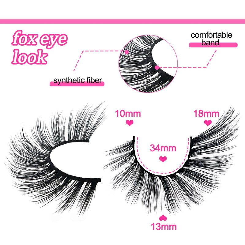 - Captivating Fox Eye Lashes: Elevate your gaze with these false eyelashes featuring a stunning Fox Eye design. The carefully crafted curl adds a touch of allure, offering a unique and charming eye makeup look.