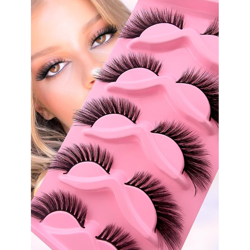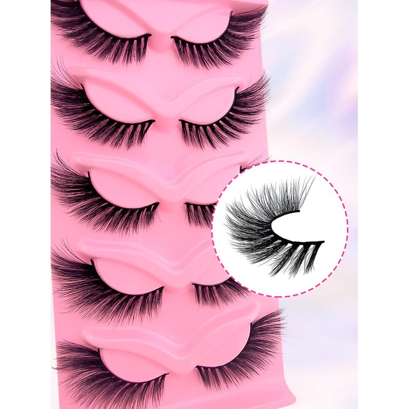 fox eye lashes wispy 15mm 18mm 20mm long cat-eye winged lashes natural look eyelashes volume soft faux mink false eyelashes fake 5 pairs pack