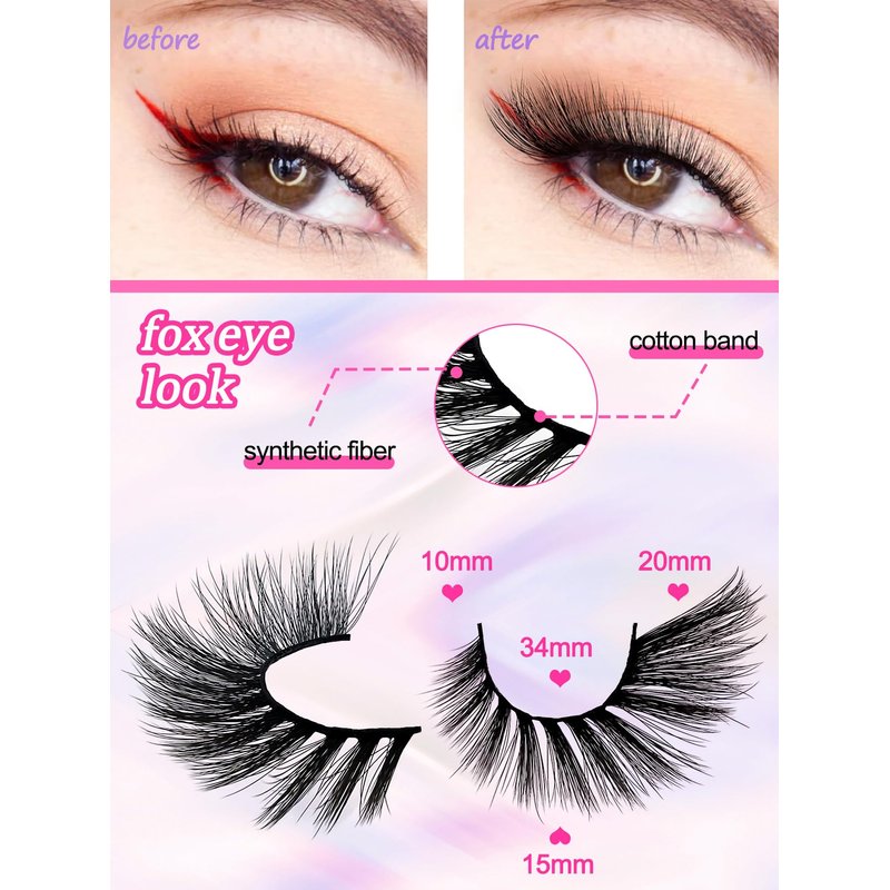 - Captivating Fox Eye Lashes: Elevate your gaze with these false eyelashes featuring a stunning Fox Eye design. The carefully crafted curl adds a touch of allure, offering a unique and charming eye makeup look.