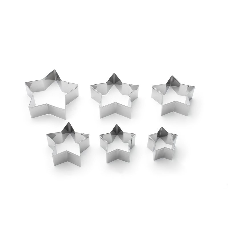 - PERFECT STAR SHAPE COOKIE CUTTER SET - This 7-piece star cookie cutter set includes 6 star shaped cutters in graduating sizes and conveniently features a handy storage tin to keep your cookie cutter shapes organized