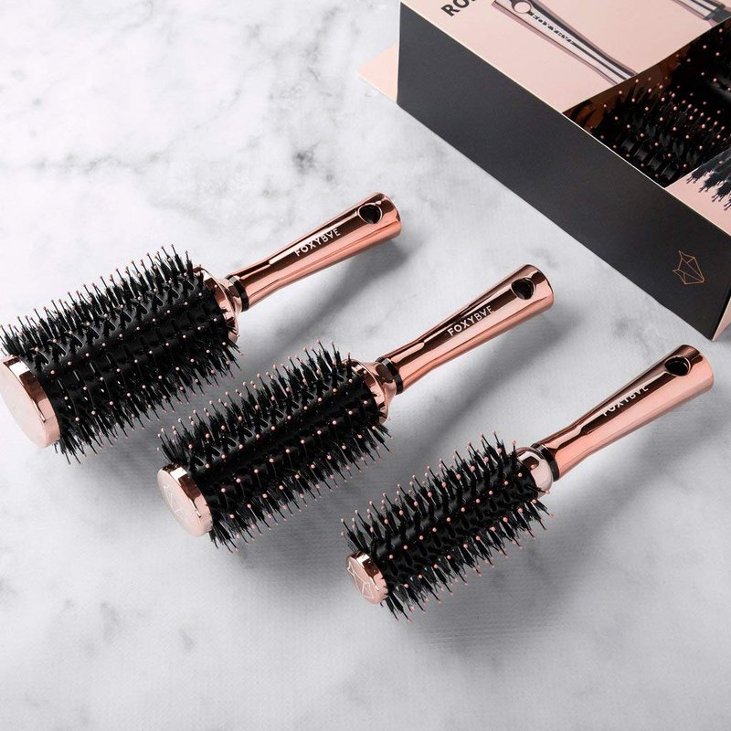 - PROFESSIONAL DESIGN ROUND HAIR BRUSH SET - Foxybae Rose Gold Round Brush set is a professional brush set with 3 different size round brushes with restorative boar bristles which is firm and high quality. This round brush set will help you to easily & painlessly brush and style all types of hair; fine, thick or curly, without tearing or breaking.