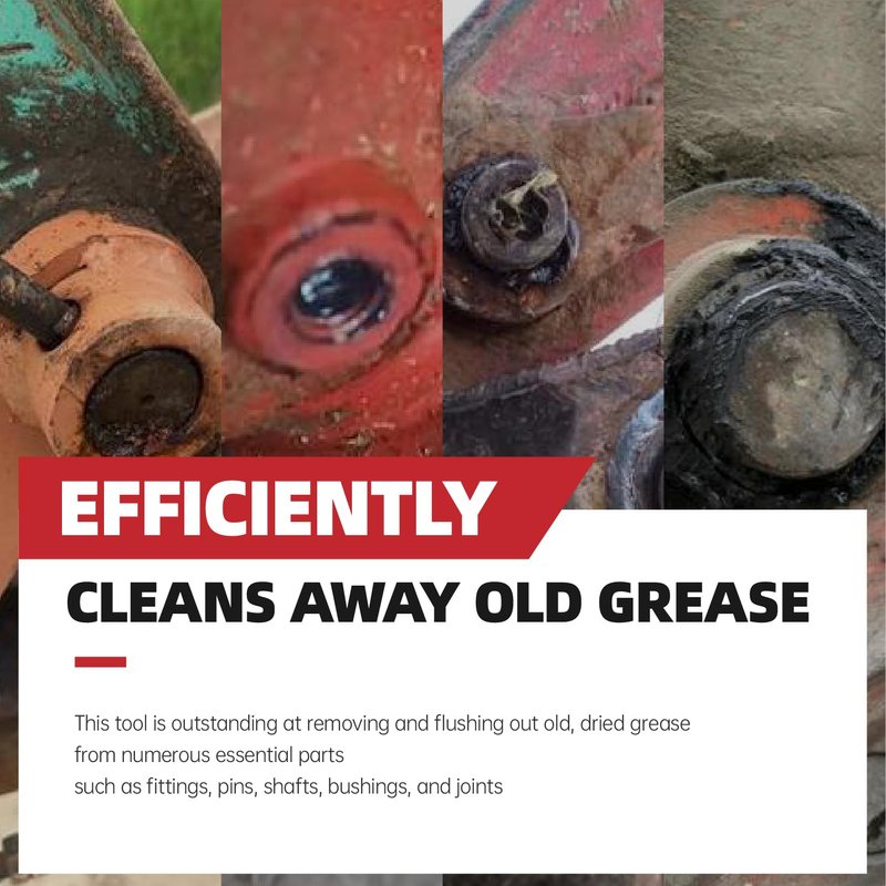 - Excellent cleaning performance:Say goodbye to clogged grease fittings! Our Grease Zerk Buster combines penetrating fluid + hydraulic pressure to dissolve and flush out hardened grease 50% faster than traditional methods. Perfect for trucks, excavators, agricultural machinery, and industrial equipment. Restores optimal lubrication flow in minutes, reducing downtime and costly bearing replacements