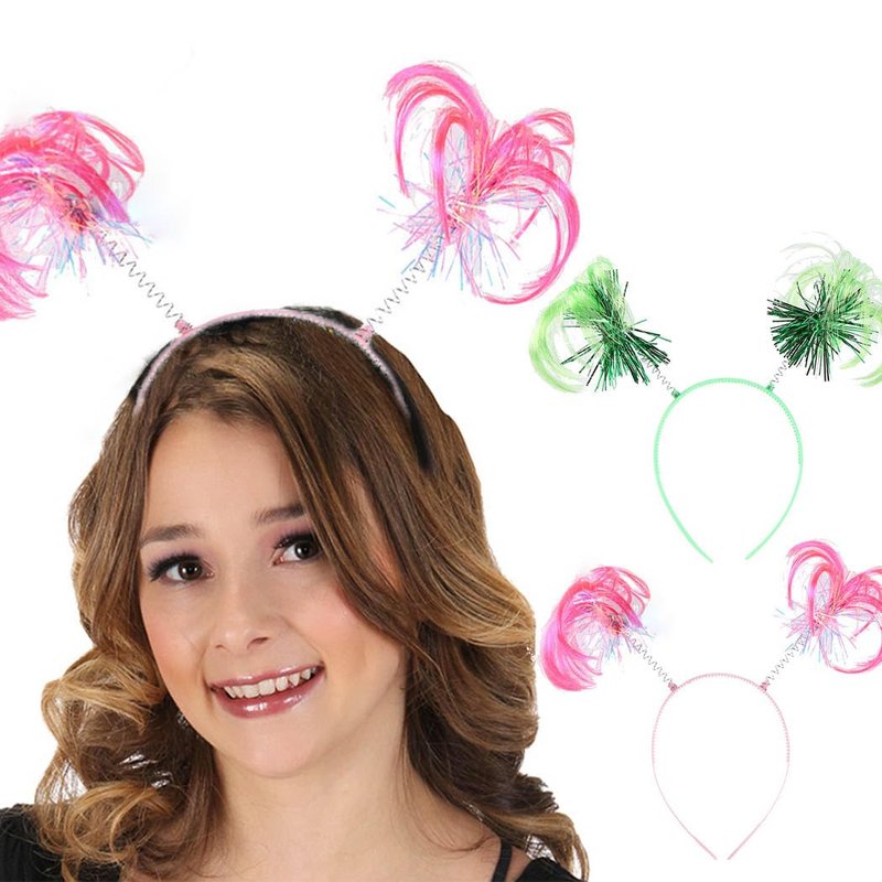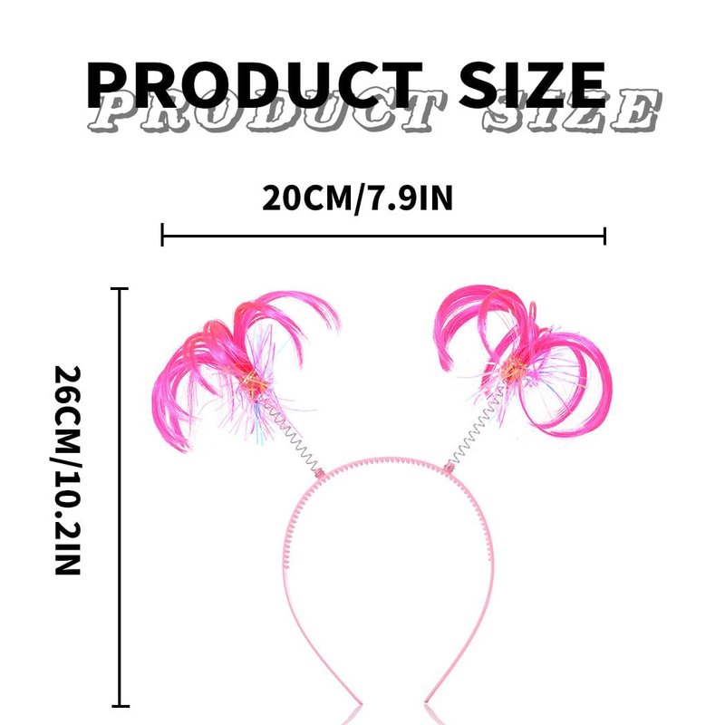 - Tinsel wrapped ponytails star headwear is designed with ponytails, which is very suitable for parties. There are two colors inside a package: pink and green, making you more unique in the crowd