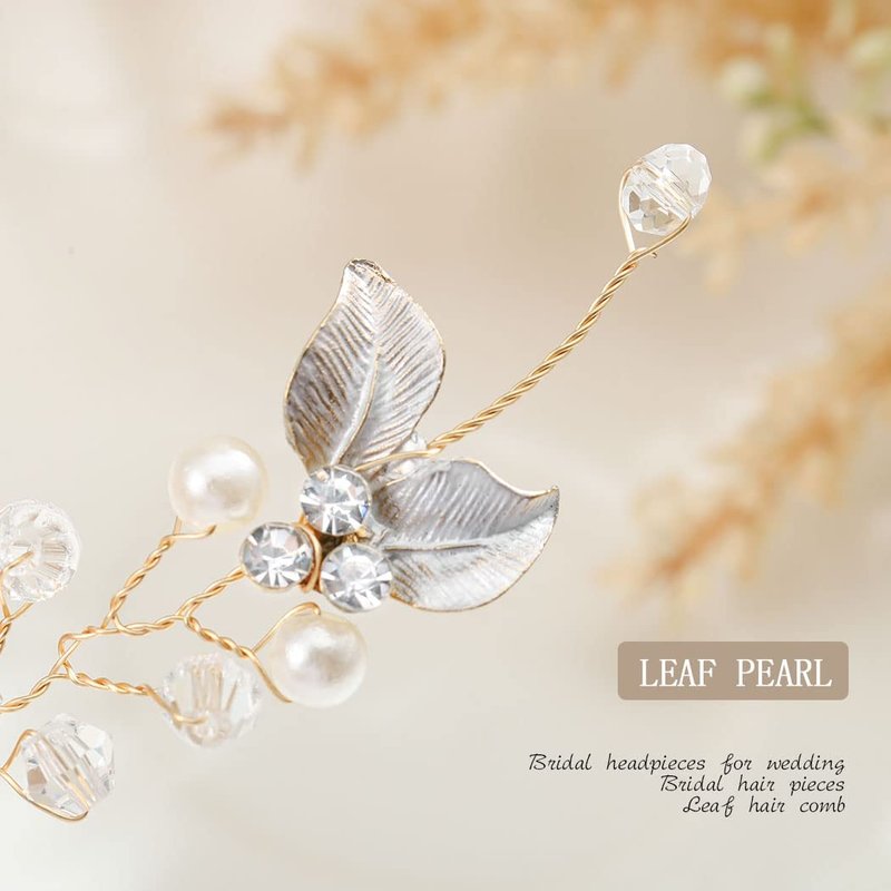 Foyte Crystal Bride Wedding Hair Comb Leaf Bridal Headpieces Rhinestone Flower Hair Vines Pearl Bridesmaid Side Combs Hair Accessories for Women and Girls (leaf)