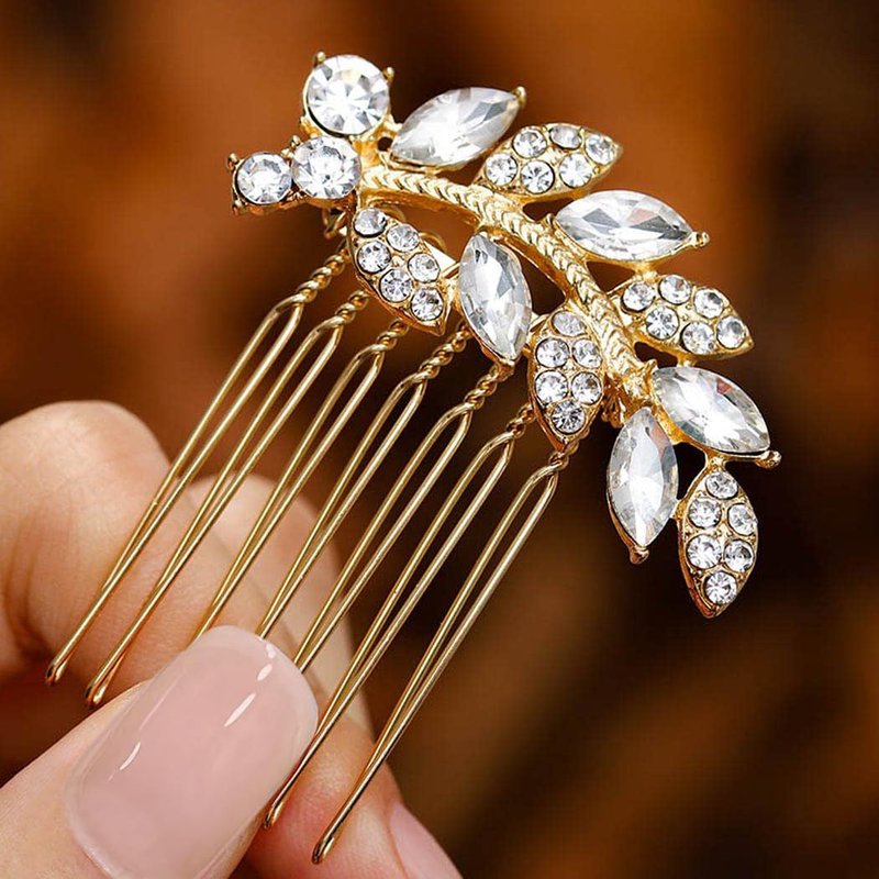 - Dainty leaf hair jewelry have gold and silver colors,suitable for all hair style designed and creative; Crystal brides hair accessory beautiful addition to your wedding day hair style on the side or in back with a veil, or in an updo,different styles have subtle differences in how you show your hair.