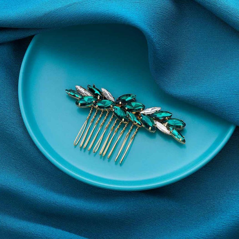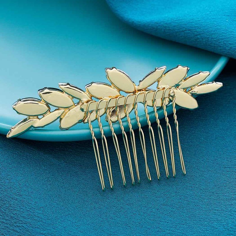 - Wedding bride hair comb is made of sparkly rihnestone and alloy comb in leaf design.Crystal hairpieces are durable, comfortable, and lightweight.