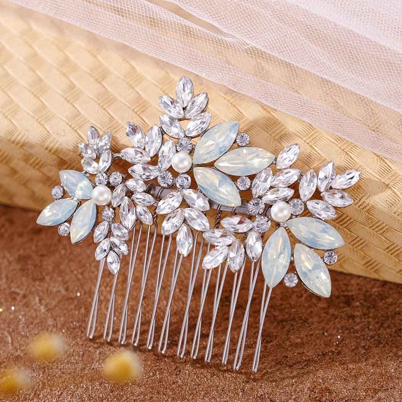 - Crystal bride hair comb is made of alloy wire. Leaf hairpieces are comfortable and lightweight.