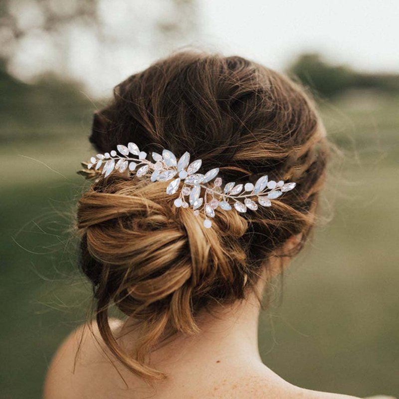- Crystal bride hair comb is made of sustained alloy wire. Leaf hairpieces are sustained, comfortable, and lightweight.