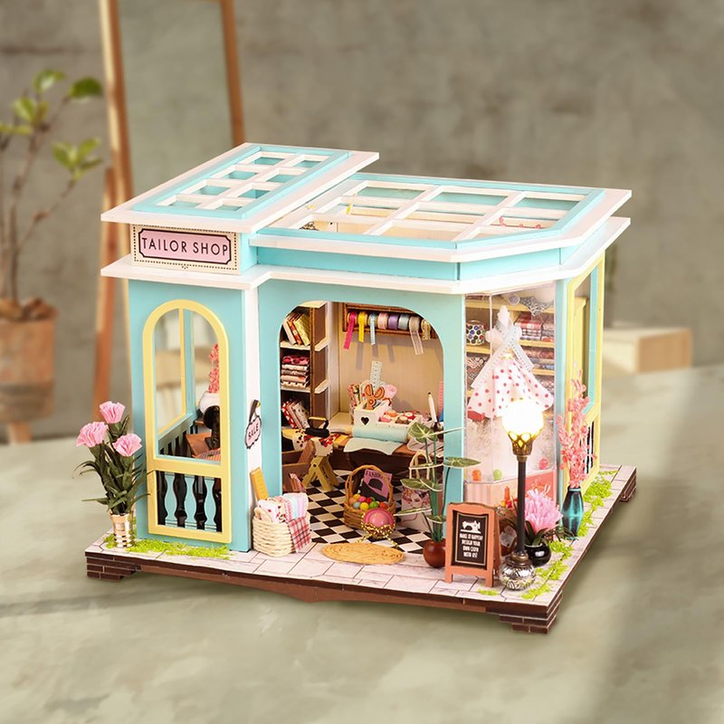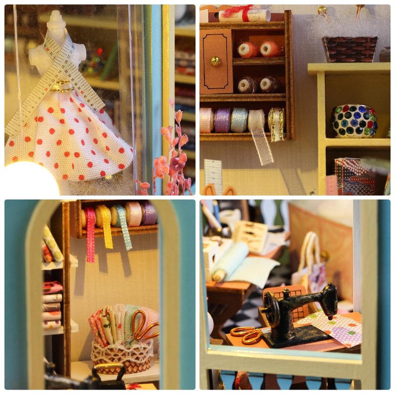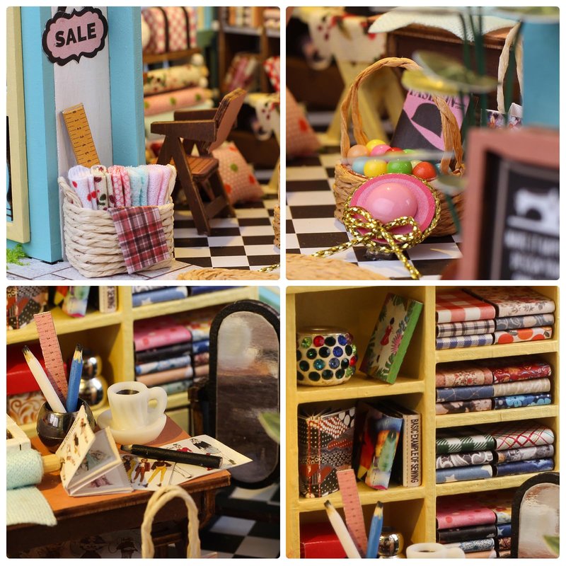 Foyucool DIY Miniature House Kit, Dollhouse Kit with Furnitures, 1:24 Mini House Making Kit for for Adult to Building, Halloween/Home Decorations/Gifts for Family and Friends, Tailor's Store