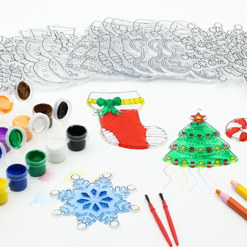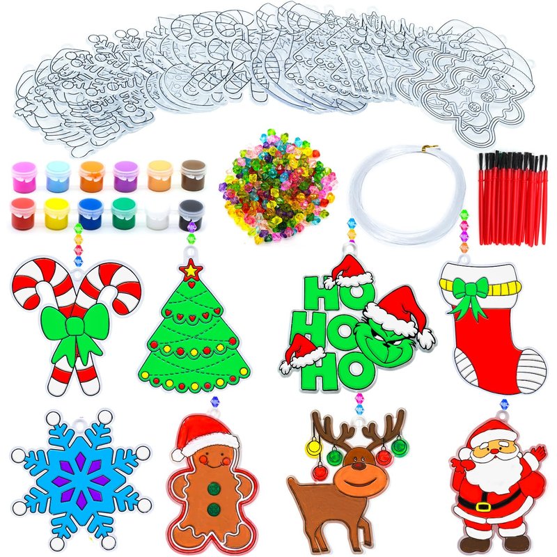 Fprl 24 Sets Christmas Craft Kits DIY Window Paint Art Suncatchers Craft Kits Assorted Sun Catcher Kits for Art Ornaments Santa Snowflake Snowman Decorations Art Project